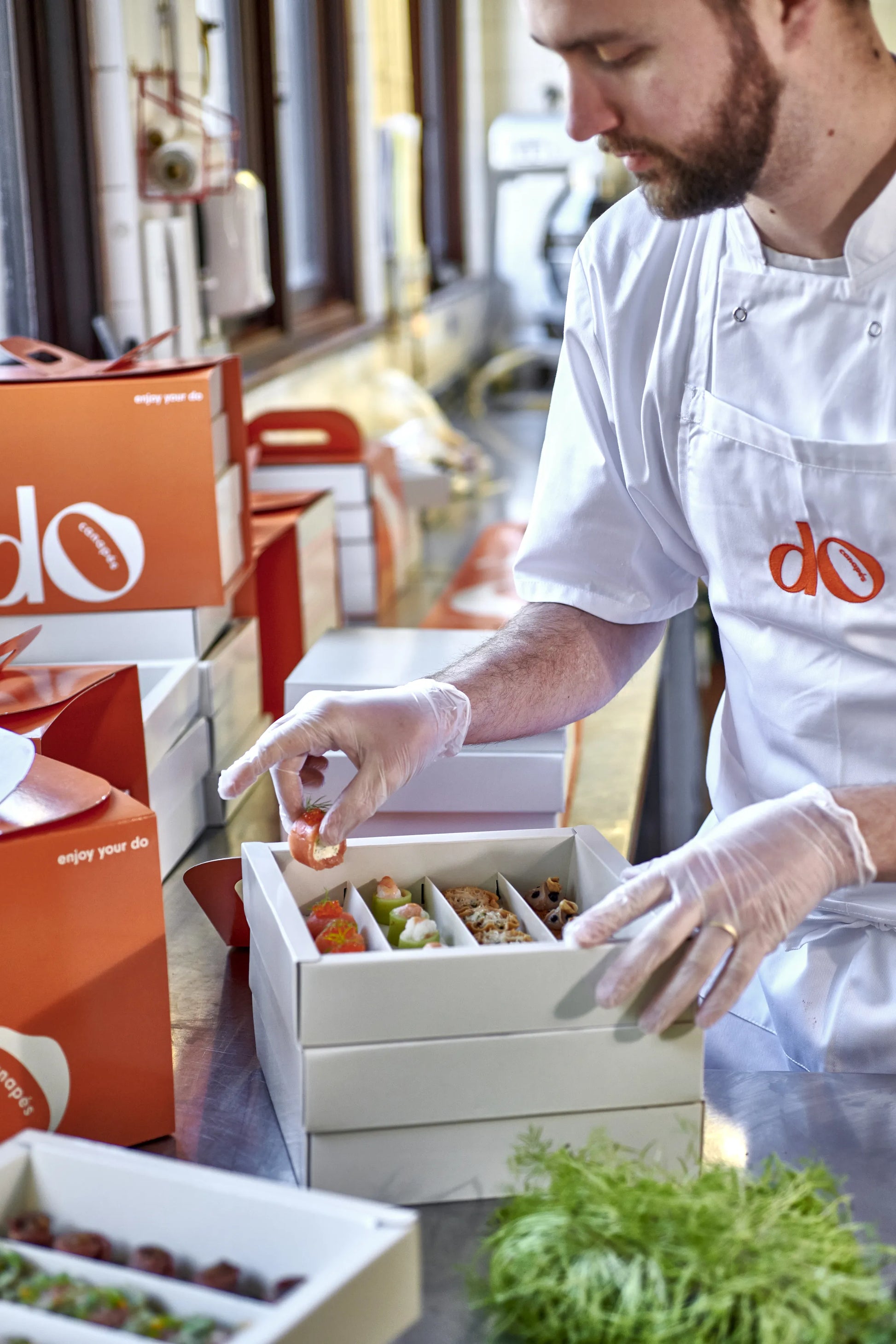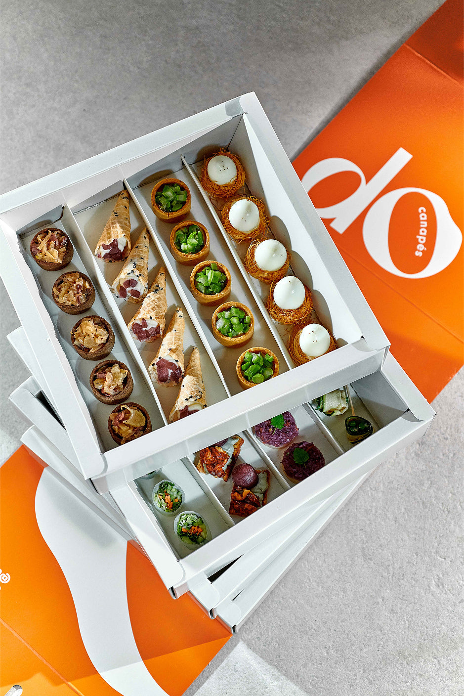 Each Do Canapés box is filled with a curated selection of bite-sized canapés, prepared fresh and beautifully arranged in our signature serve-straight-from-the-box tray. Each box serves approximately 12–16 people (or more for light snacking).