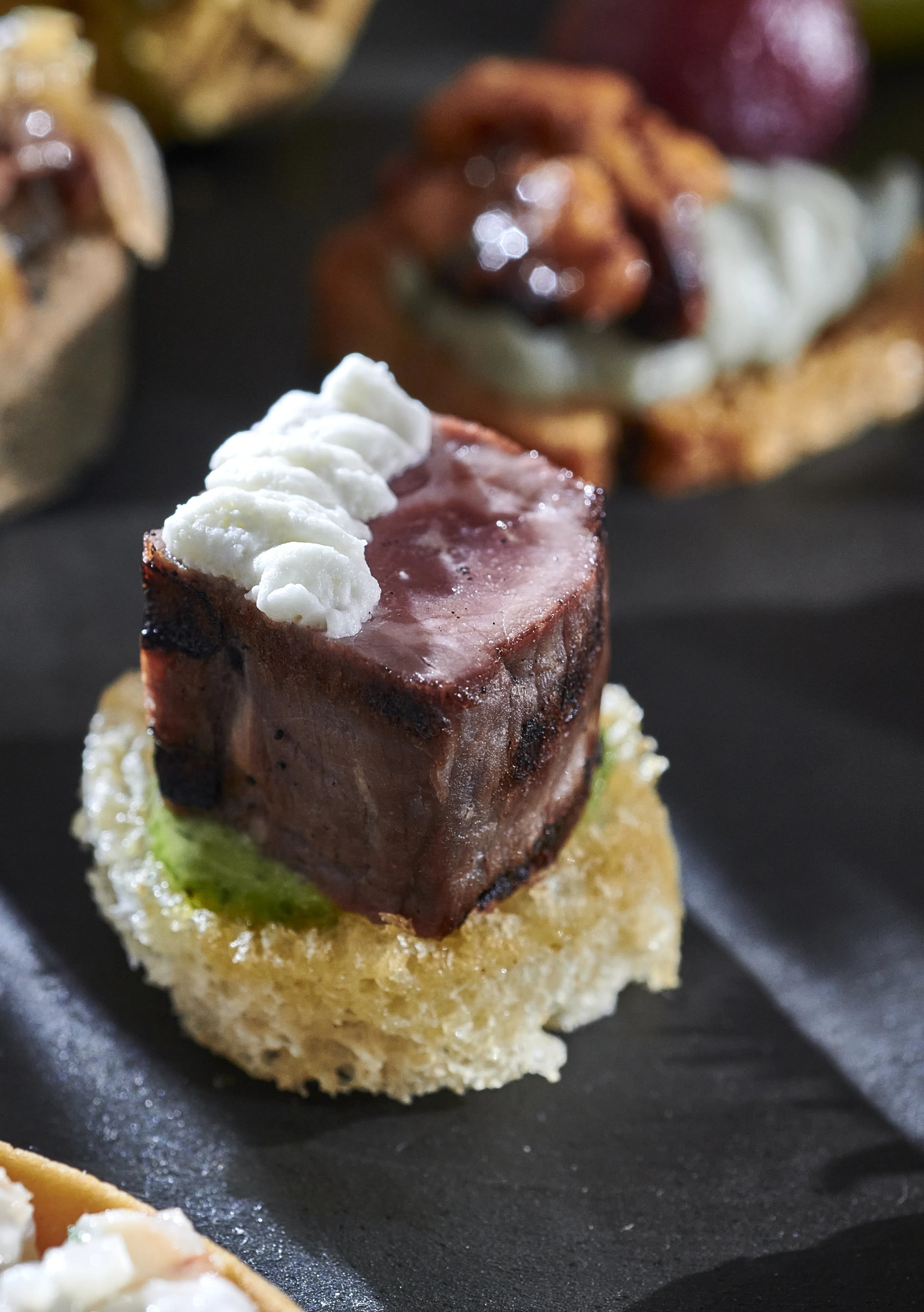Premium meat and game canapés showcasing the finest from farm and field. Each creation is crafted with seasonal ingredients to deliver bold, memorable flavors with every bite.